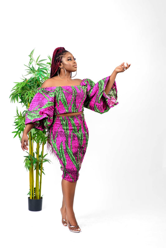 Shaku Shaku - Ensemble haut court et jupe imprimé africain
